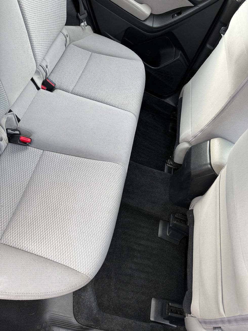 Thorough vacuuming of carpet, under seats, and in seat track channels